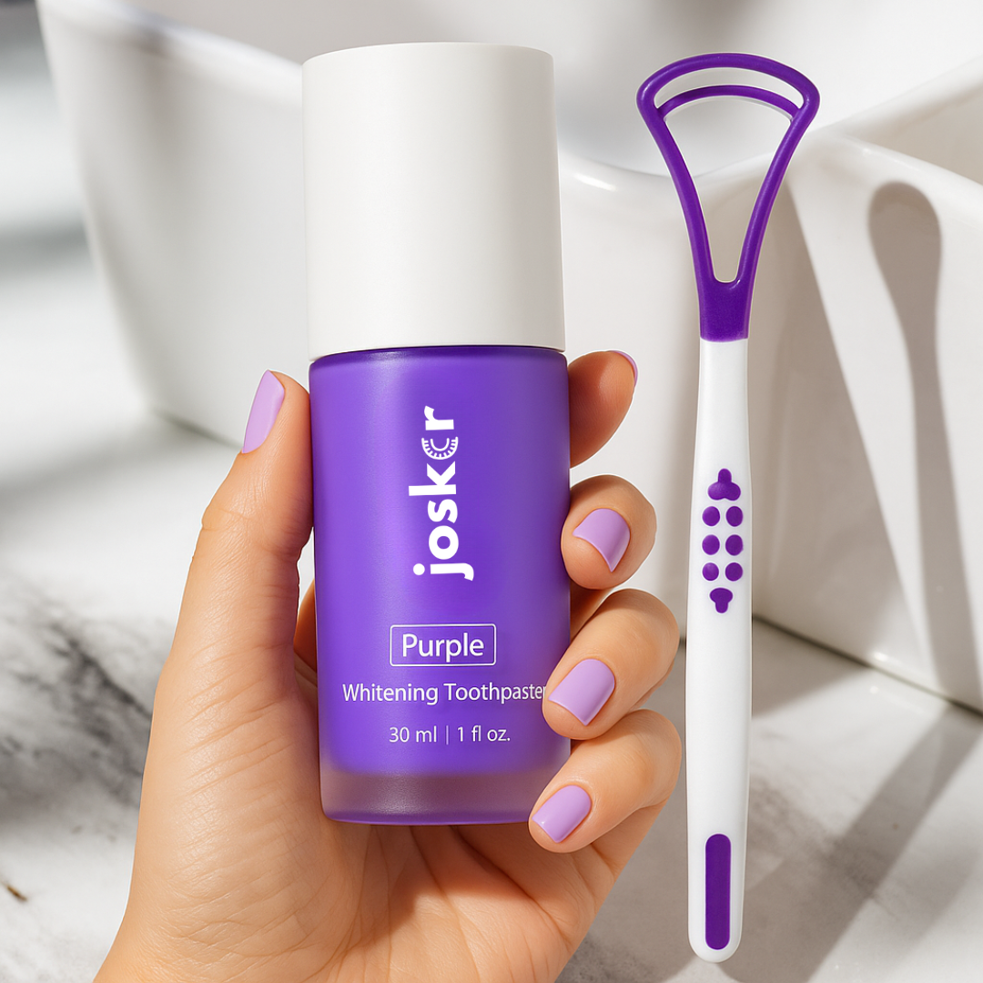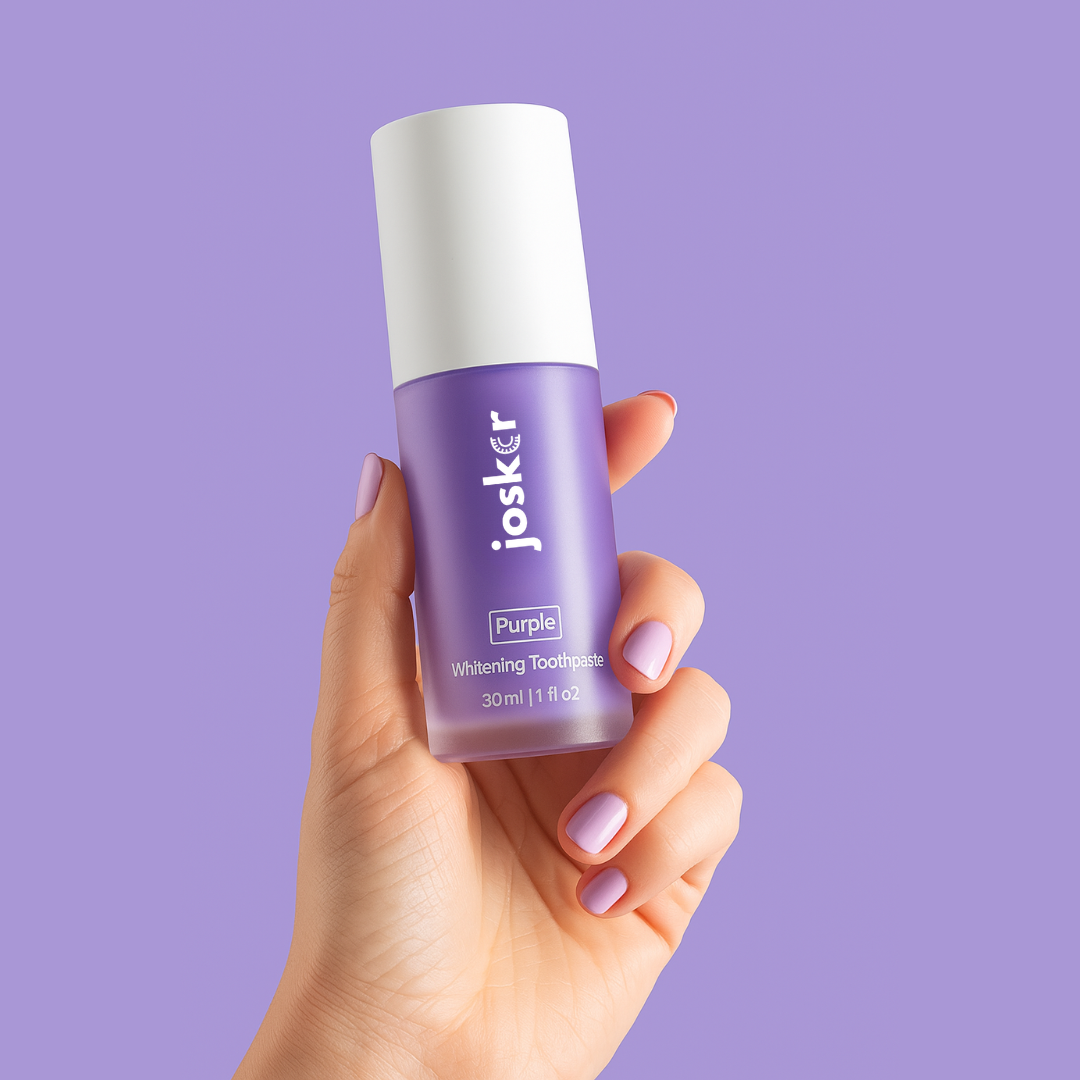 Alles beginnt beim Farbkreis: Lila und Gelb stehen sich dort als Komplementärfarben gegenüber. Nach dem gleichen Prinzip wie bei lila Zahnpasta kann die Anwendung von Lila auf den Zähnen die gelblichen Untertöne vorübergehend neutralisieren und so ein sichtbar weißeres Ergebnis erzielen. Ziemlich cool, oder?